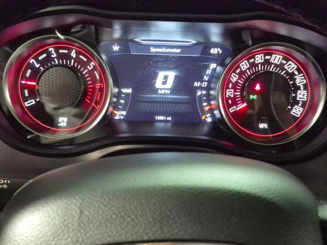 The Challenger's striking Octane Red Pearlcoat exterior is complemented by a wealth of premium upgrades, including the Plus Package with locking lug nuts, power folding mirrors, and high-intensity discharge headlamps. The Harman/Kardon audio group with 18 premium speakers and a trunk-mounted subwoofer delivers a truly immersive listening experience.